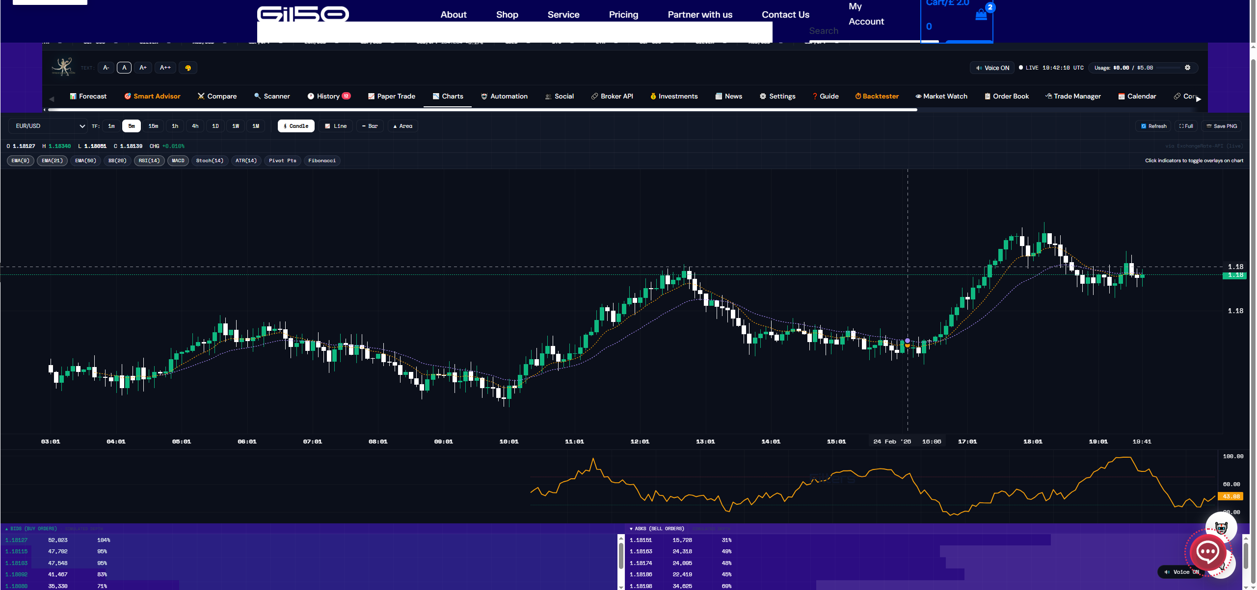 ✓ 20+ indicators (RSI, MACD, EMA, BB, etc.)