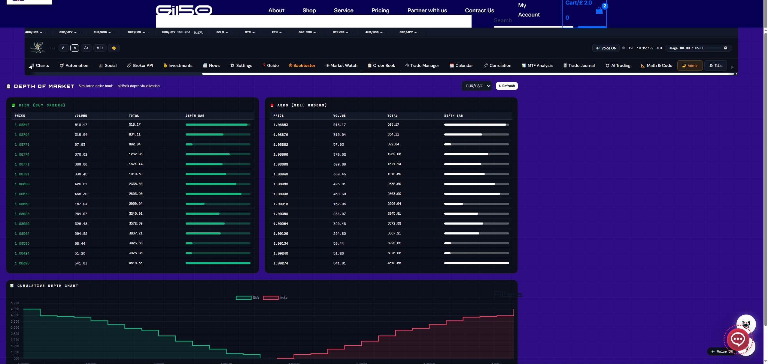 ✓ Live bid/ask depth for your broker